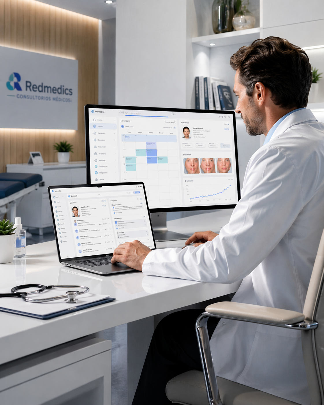 RedMedics es una solución médica 100% en la nube que optimiza la gestión de centros de salud de forma simple, segura y eficiente. Integra agenda, gestión de pacientes y control financiero en una sola plataforma, permitiendo mejorar la atención, agilizar procesos y tomar decisiones en tiempo real. Sin instalaciones, accesible desde cualquier lugar y lista para crecer contigo, RedMedics impulsa una gestión moderna enfocada en resultados.